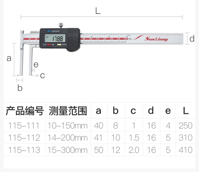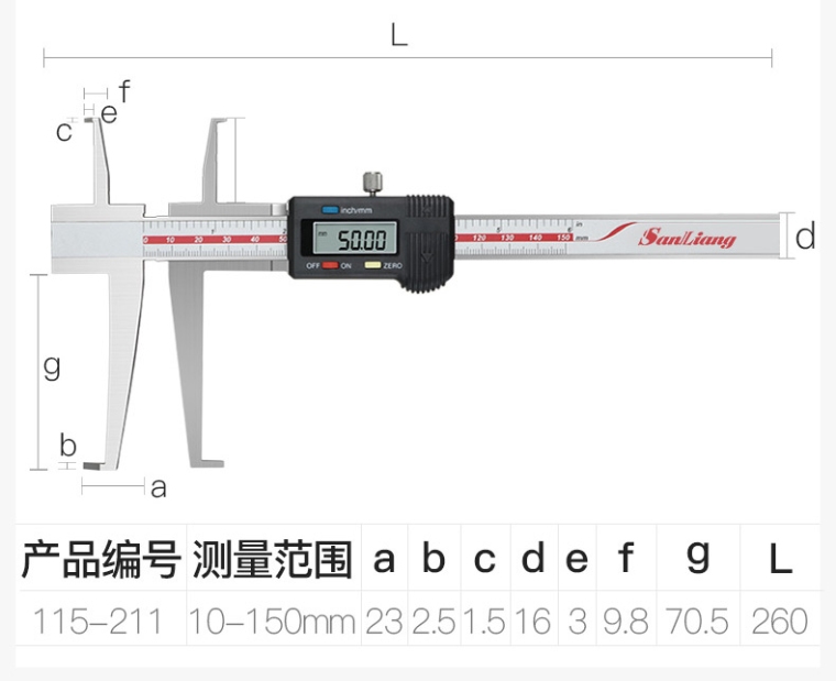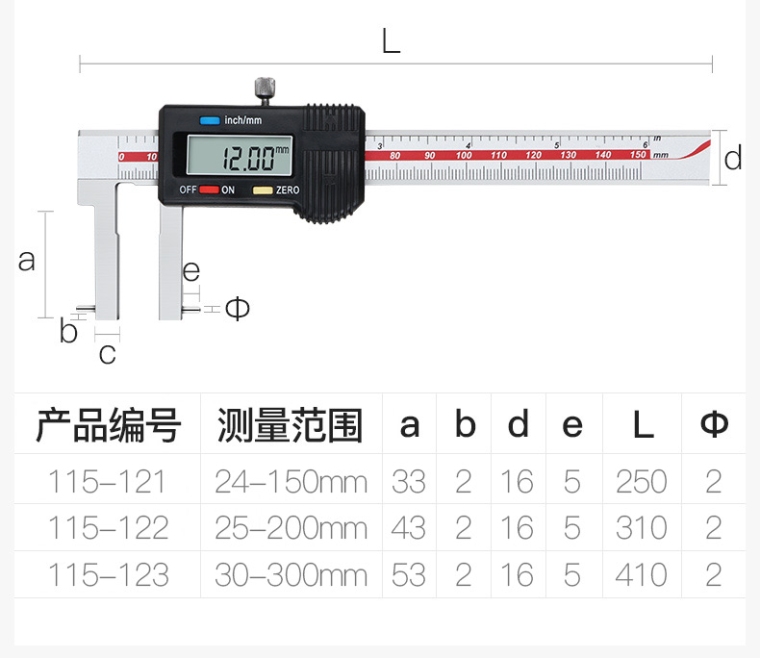 115-122 25-200mm圆头内沟槽数显游标卡尺